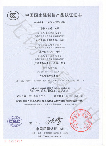 近日,中欧在线平台-(中国)官方网站的移动工业冷气机、暖风机产品7个型号取得了中国质量认证中心颁发的3C强制认证证书。